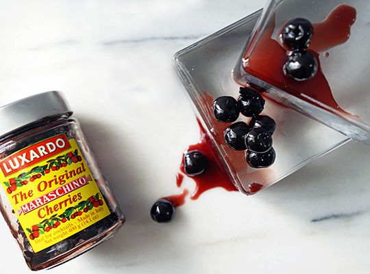 Out of the jar or tin, Luxardo cherries are nothing like the candy-apple red lumps bartenders plunk into kiddie cocktails. They are a touch of class, the dark, perfect capper to a stiff drink. Their red is so deep, it's almost black; their syrup thicker than molasses on a chilly day. The taste is nutty like Amaretto and fruit-forward, without the sticky and acrid taste that waxy imitation maraschinos have. Slip one into a classic cocktail and there's no comparison.