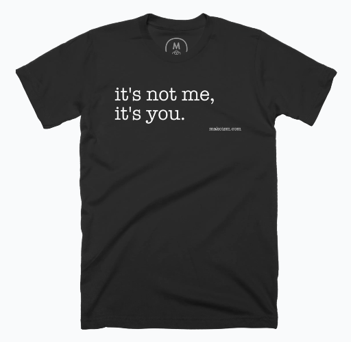 You know the deal - you're listening to someone talk and talk and talk, and you recognize that you're not the problem; they are. Adding a new "philosophical mottos" shirt to the shop was an excellent opportunity. It comes in black, gray, blue, white or pink.