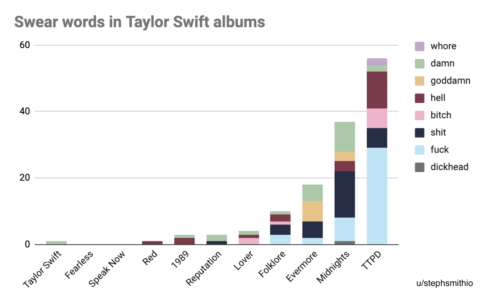 And... the interesting evolution of swearing in Taylor Swift albums (posted by Jon Hanshaw)..