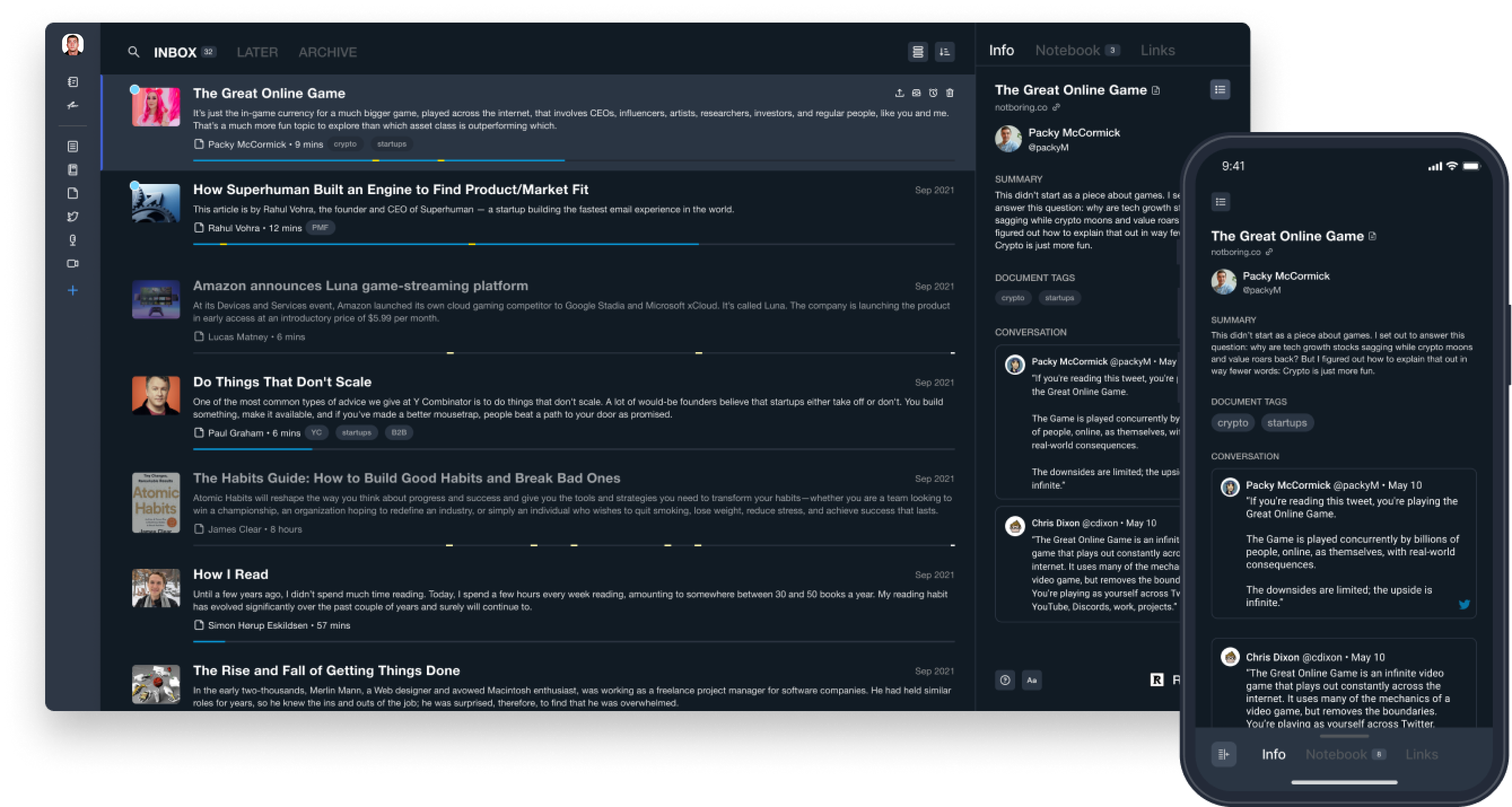 Over the last few months, I have been playing more with readwise.io as a tool to highlight articles, books and podcasts. This week on their blog they teased a sneak peak of their upcoming reading application to take on Pocket, Instapaper, etc.