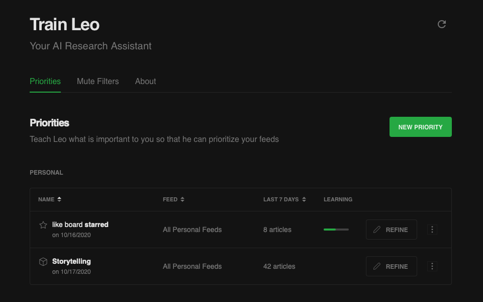For example, I have Leo agents built that examine all of the content I am subscribed to, and if it relates to the topic of “storytelling”, Leo makes it a priority in the things that I read.